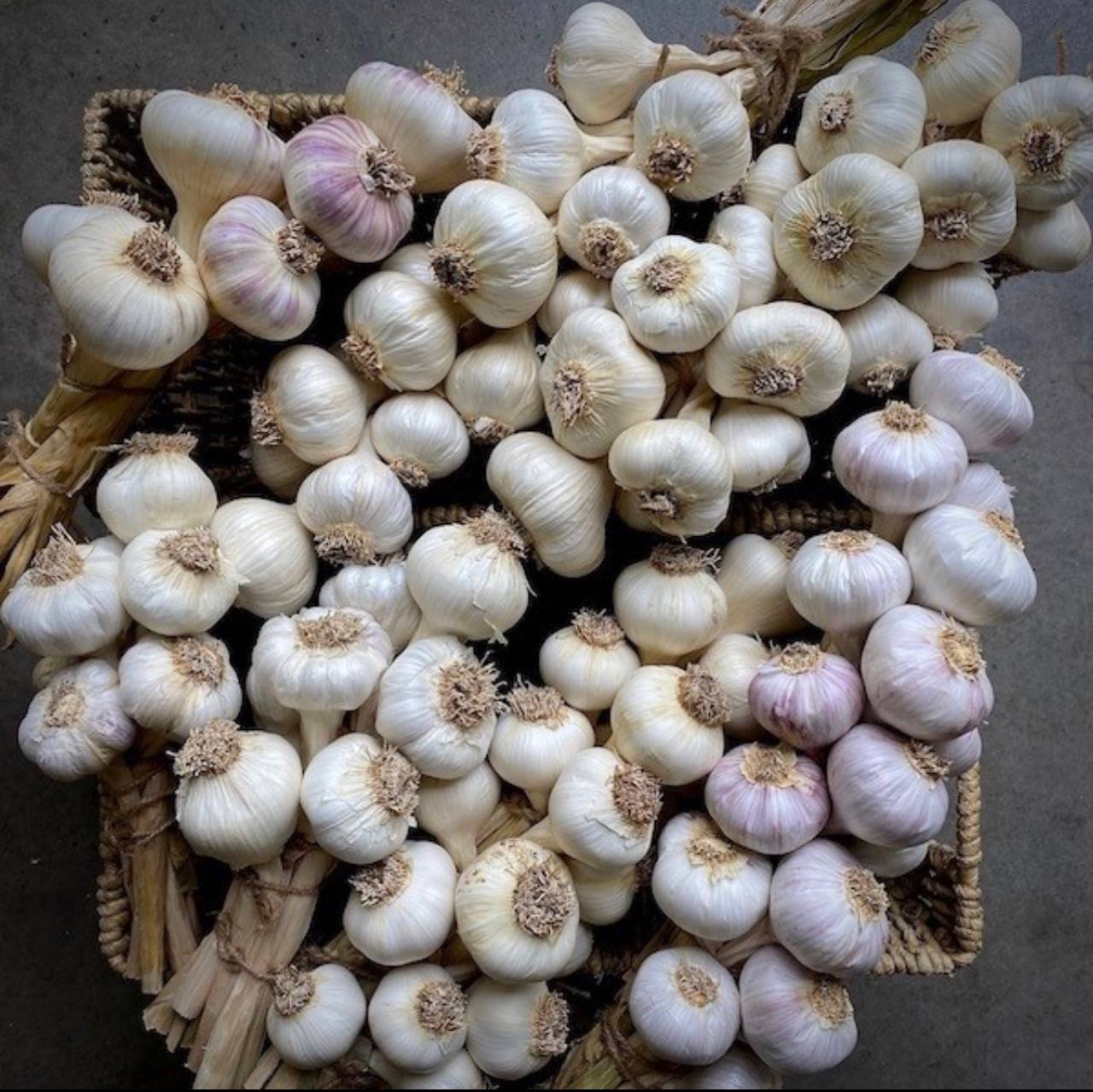 Most garlic is ready to harvest between late April and mid-May. Depending on the type, properly cured garlic can store for up to six months in a cool, dark location.